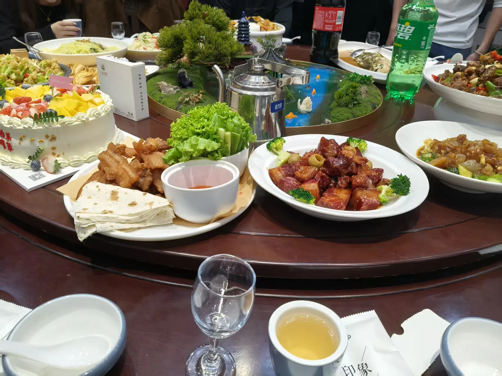 Kio igis la eventon pli speciala estis ke la naskiĝtagoj de kvar dungitoj alproksimiĝis. Estro Gao preparis naskiĝtagajn kukojn kaj longvivajn nudelojn por ili. Ni kune kantis la naskiĝtagan kanton kaj deziris al la kvar naskiĝtagsteluloj feliĉon kaj bonan sanon. Ili estis profunde kortuŝitaj de ĉi tiu surprizo.